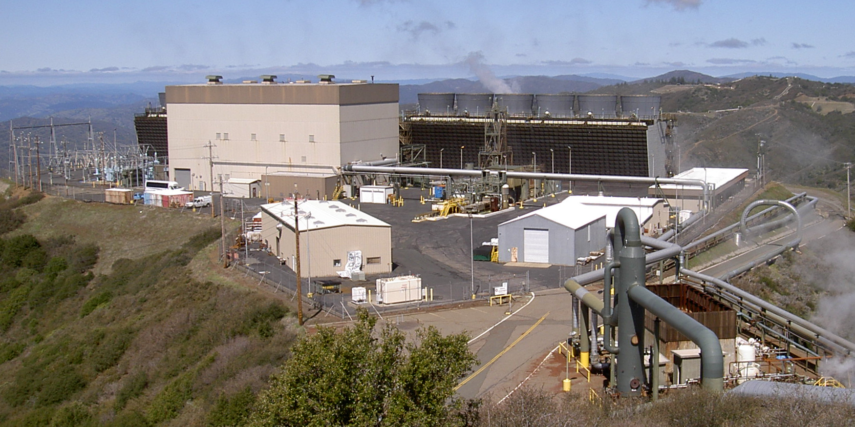 - The Geysers. Es un conjunto de centrales geoeléctricas ubicado a 116 kilómetros de la ciudad de San Francisco, Estados Unidos. Es considerado el mayor complejo geotermoeléctrico del mundo. La potencia instalada ronda los 1.500 a 1.600 megavatios, aunque la producción efectiva suele ser menor según la disponibilidad de vapor.